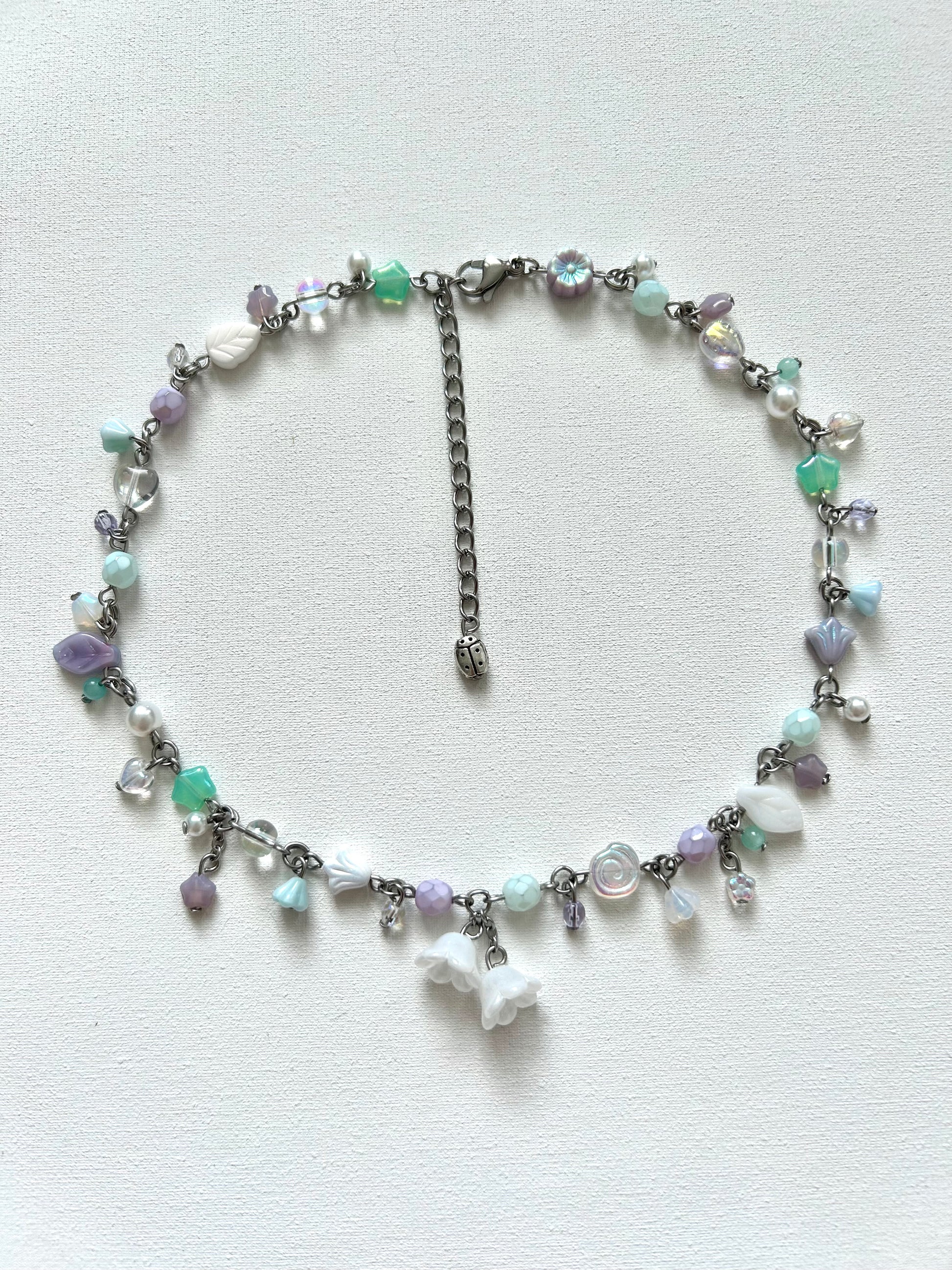 CARE- all of my pieces are made with love and stainless steel, designed to bring you a long lasting whimsical touch to everyday life. :) to insure longevity, remove jewelry before making contact with water, avoid spraying perfume directly on piece, take off before sleeping to avoid tugging and take off before exercising to avoid moisture. keep in a dry place, avoid keeping in humidity such as in a bathroom. all of my pieces contain glass beads therefore are fragile and should be handled with care.