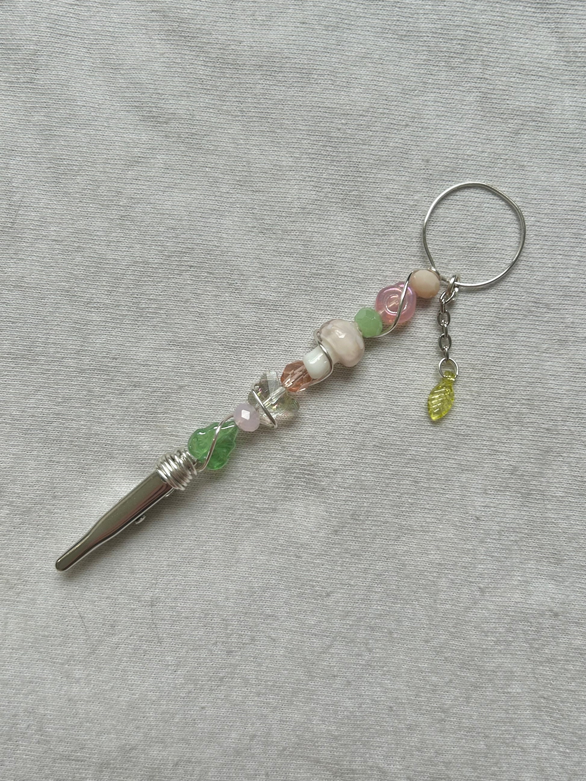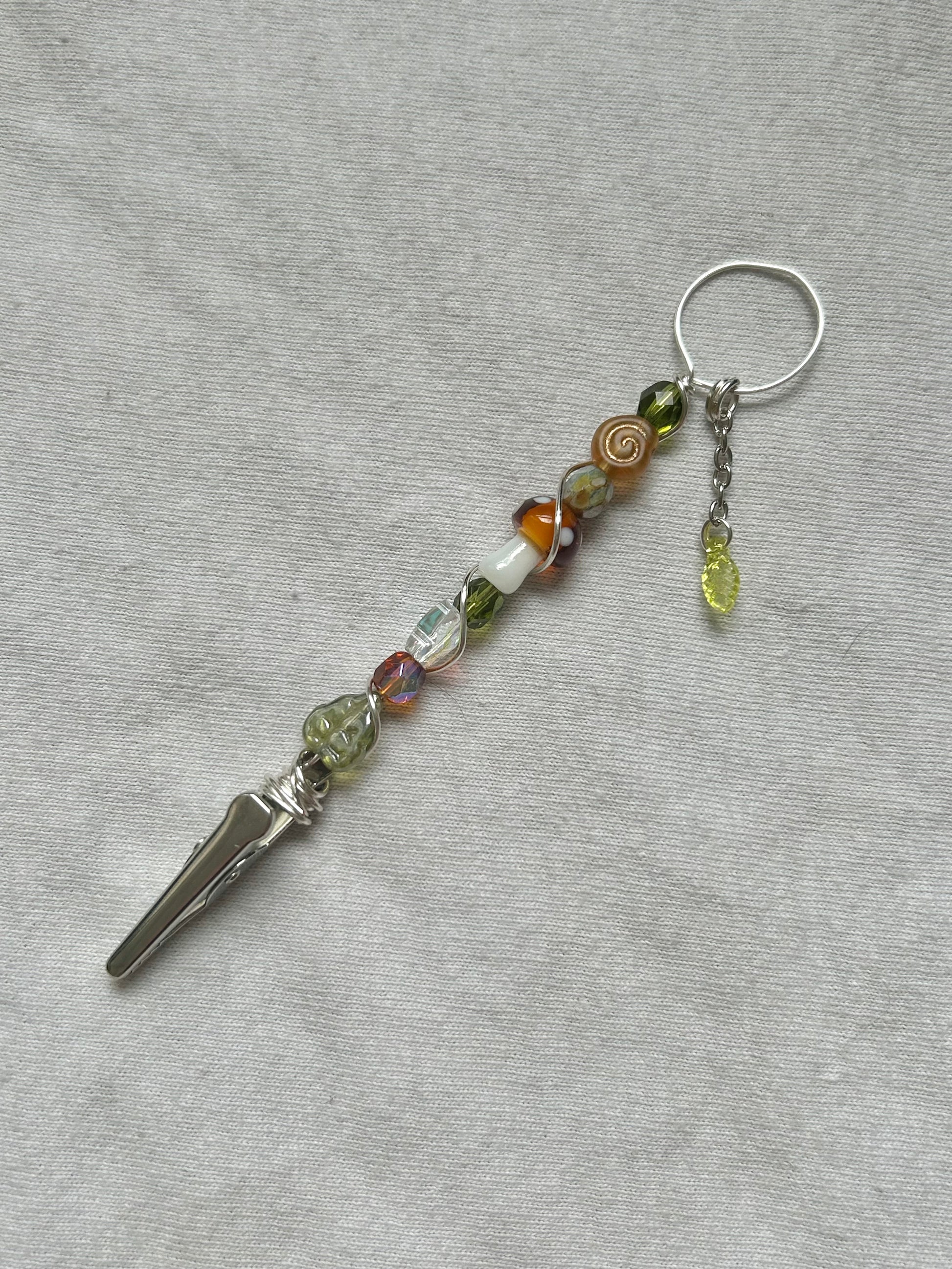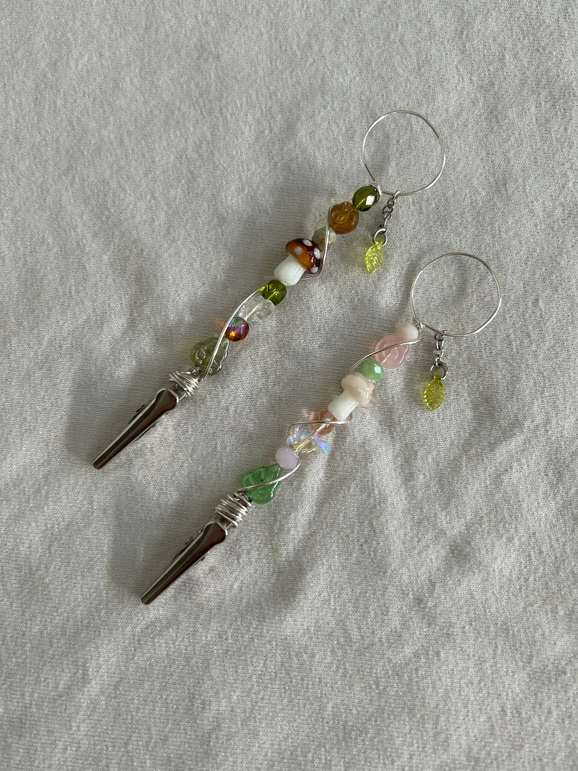 CARE- all of my pieces are made with love and stainless steel, designed to bring you a long lasting whimsical touch to everyday life. :) to insure longevity, remove jewelry before making contact with water, avoid spraying perfume directly on piece, take off before sleeping to avoid tugging and take off before exercising to avoid moisture. keep in a dry place, avoid keeping in humidity such as in a bathroom. all of my pieces contain glass beads therefore are fragile and should be handled with care.