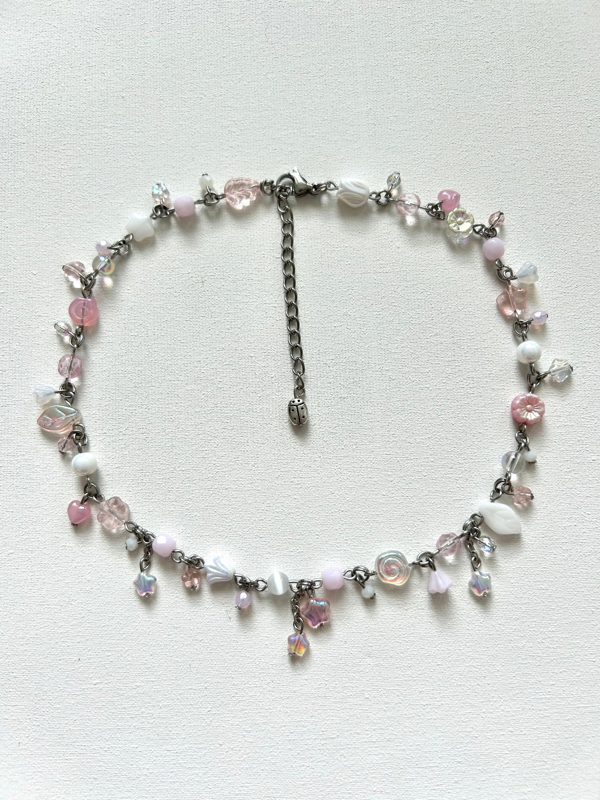 CARE- all of my pieces are made with love and stainless steel, designed to bring you a long lasting whimsical touch to everyday life. :) to insure longevity, remove jewelry before making contact with water, avoid spraying perfume directly on piece, take off before sleeping to avoid tugging and take off before exercising to avoid moisture. keep in a dry place, avoid keeping in humidity such as in a bathroom. all of my pieces contain glass beads therefore are fragile and should be handled with care.